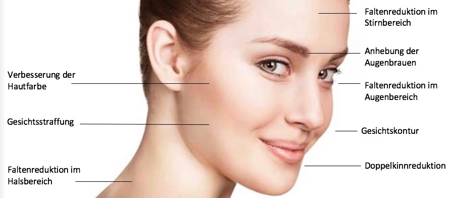 Die Behandlung stimuliert die körpereigene Regeneration (Kollagenaufbau wird angeregt) für die folgenden 3 bis 6 Monate, so dass eine nachweisliche Auffrischung und Straffung der tiefen Gewebsschichten unter der Haut entsteht.